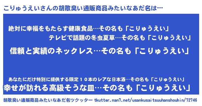 | ヘコむあだ名 | 『こりっぺ』『こりゅうえい(爆)』 |