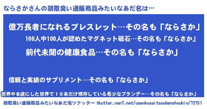 | ヘコむあだ名 | 『ならさか(苦笑)』『ならにー』 |
