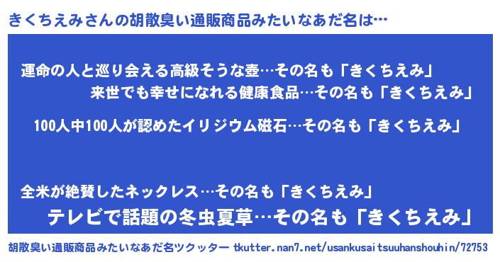 | ヒーロー風カッコイイあだ名 | 『正義の使者きくちえみ』『魔戒騎士キク』 |