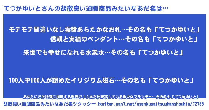| 男性向けラノベタイトル風あだ名 | 『てつかゆいとという概念が存在しない退屈な世界 』 |