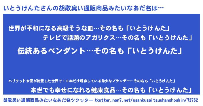| 男性向けラノベタイトル風あだ名 | 『転生したらいとうけんただった件』 |