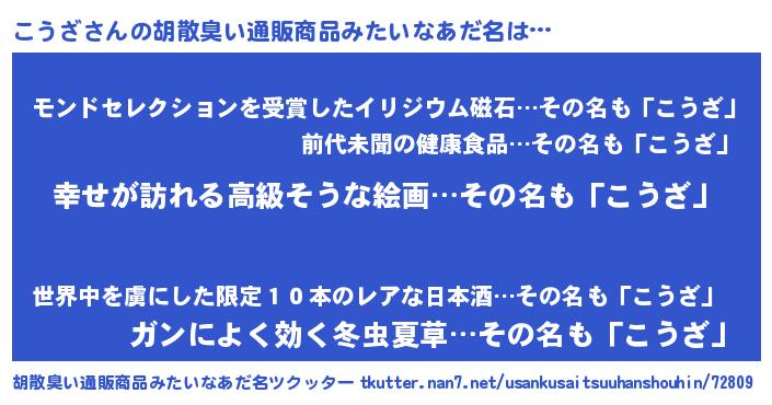 | 意味不明あだ名 | 『めかぶ科こうざ属』『自称こうざ』 |