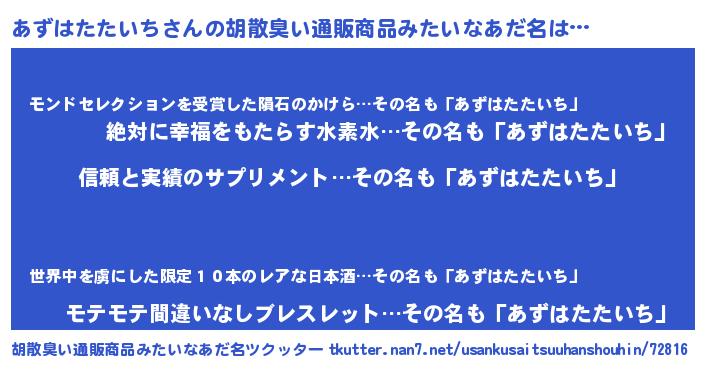 | 意味不明あだ名 | 『とにかく怪しいあずはたたいち』 |