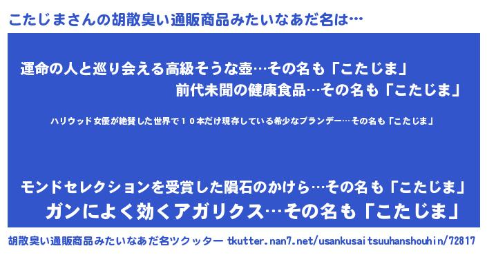 | 意味不明あだ名 | 『住所不定無職こたじま(91歳)』 |