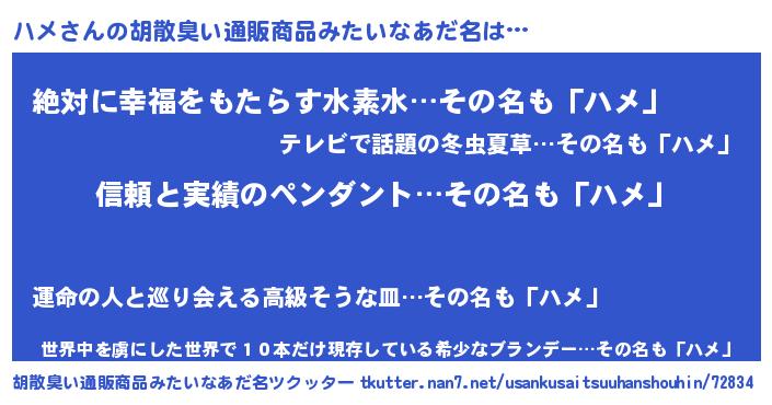 | 意味不明あだ名 | 『とにかく怪しいハメ』『永久保存ハメ』 |