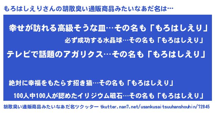 | ヘコむあだ名 | 『なまこ酢』『もろっふぃ~』 |