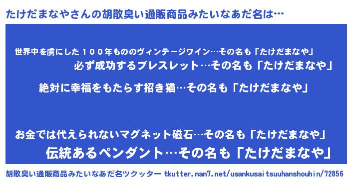 | 伝説のあだ名 | 『聞きしに勝る吟遊詩人たけだまなや』 |