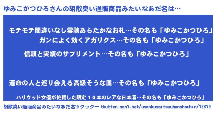 | 男性向けラノベタイトル風あだ名 | 『ダンジョンにゆみこかつひろを求めるのは間違っているだろうか』 |