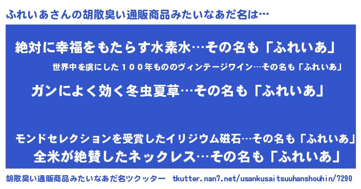 | 男性向けラノベタイトル風あだ名 | 『魔法科高校のふれいあ』 |