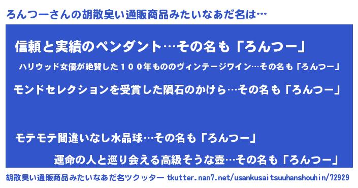 | ヘコむあだ名 | 『ろんっぺ』『牛乳』『ろんにゅー』 |