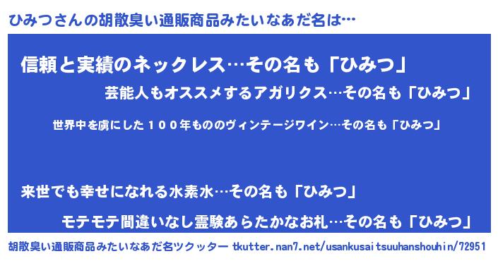 | 意味不明あだ名 | 『住所不定無職ひみつ(11歳)』『自称ひみつ』 |