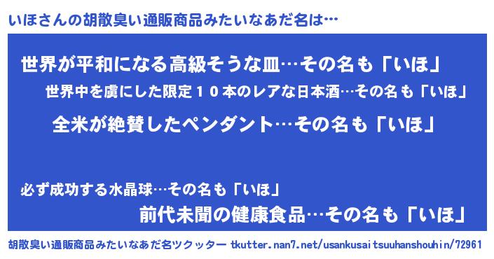 | ヘコむあだ名 | 『いほぷりん』『豆乳』『いほ(爆)』 |