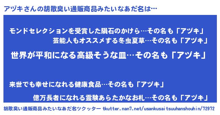 | ヘコむあだ名 | 『なまこ酢』『アヅっふぃ~』 |
