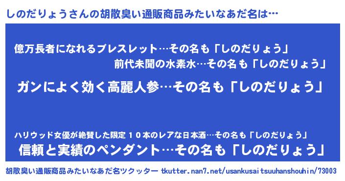 | 恥ずかしいあだ名 | 『シノダリョウデラックス』『しのちん』 |