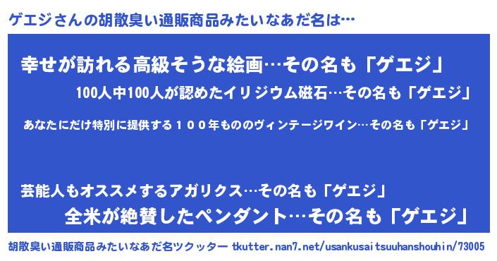 | ヒーロー風カッコイイあだ名 | 『仮面ゲエダー』『ウルトラゲエジマン』 |