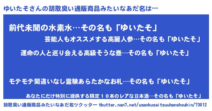 | ファンタジー風あだ名 | 『エターナルユイタソー』『ゼユイトゥ』 |