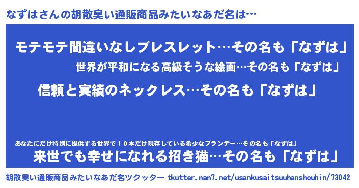 | ヘコむあだ名 | 『なず太郎』『なずにー』『酢こんぶ』 |