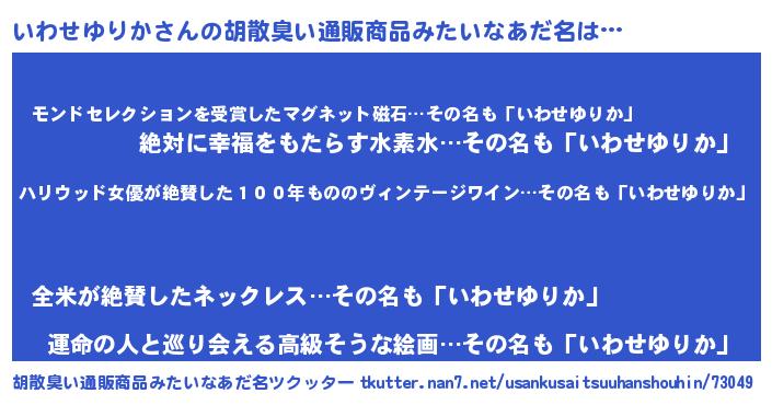 | ヘコむあだ名 | 『牛乳』『いわせゆりか(笑)』 |