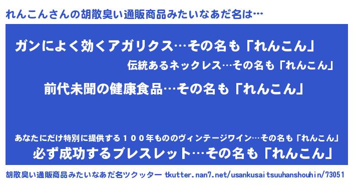 | ヘコむあだ名 | 『れんこん(爆)』『れんにゅー』 |