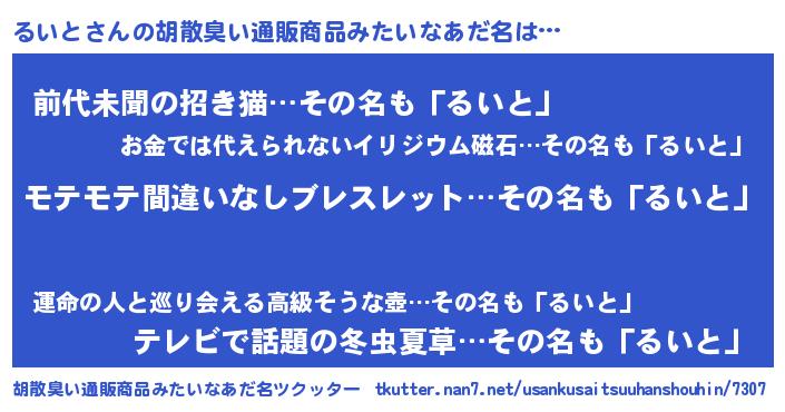 | ヘコむあだ名 | 『るいふぇ~』『るいと(笑)』『豆乳』 |