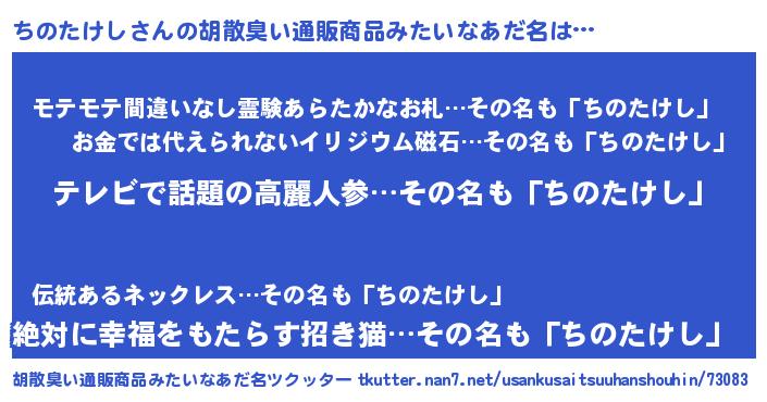 | 恥ずかしいあだ名 | 『チノタケシデラックス』『ちのちん』 |