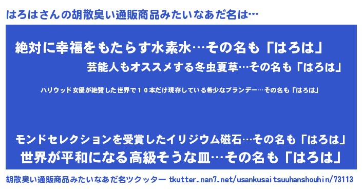| ヘコむあだ名 | 『はろは(苦笑)』『つくし』 |