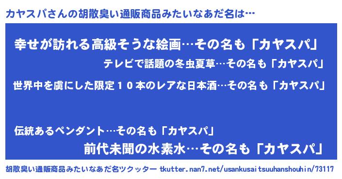 | 意味不明あだ名 | 『住所不定無職カヤスパ(14歳)』 |