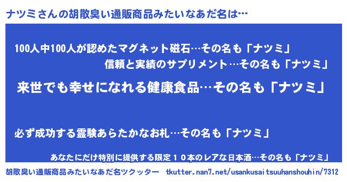 | 意味不明あだ名 | 『永久保存ナツミ』『ペロリンナツミ』 |