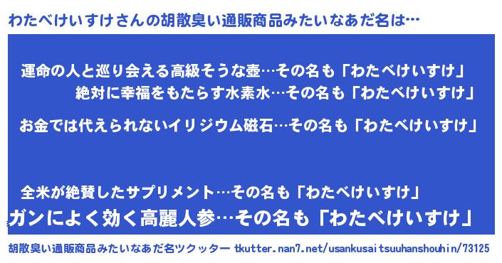 | 欧米人風あだ名 | 『アンジェラ・わたべけいすけ』 |