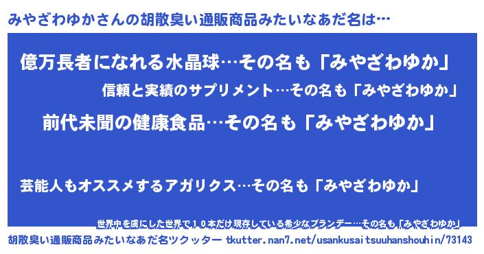 | ヒーロー風カッコイイあだ名 | 『ネオミヤザワユカ』『仮面ミヤダー』 |
