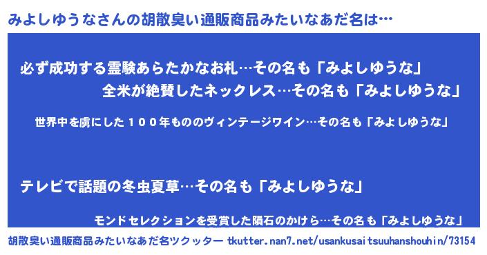| 恥ずかしいあだ名 | 『プリティーみよしゆうな』『みよちん』 |