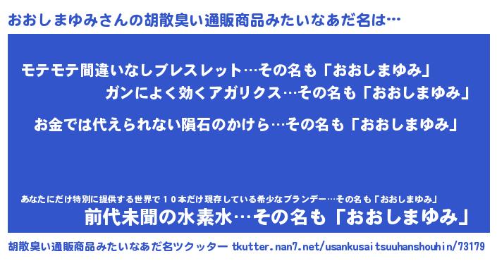 | ヘコむあだ名 | 『おおっふぃ~』『おおしまゆみ(爆)』 |