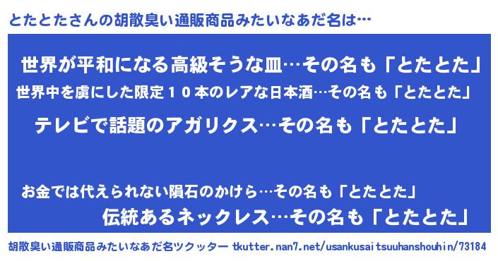 | 意味不明あだ名 | 『自称とたとた』『とたとたフォーエバー』 |
