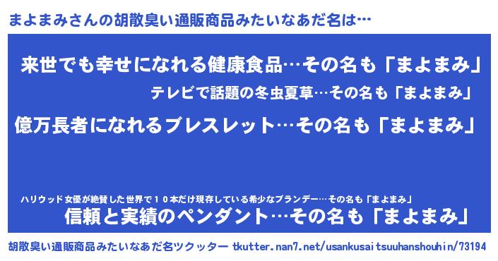 | 男性向けラノベタイトル風あだ名 | 『うちのまよまみが世界を掌握している!』 |