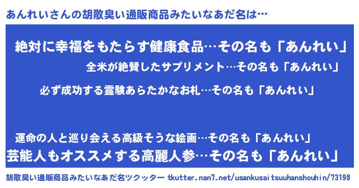 | 意味不明あだ名 | 『ペロリンあんれい』『永久保存あんれい』 |