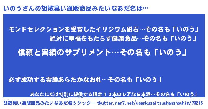 | ヒーロー風カッコイイあだ名 | 『暗黒騎士イノ』『慈愛の使者いのう』 |