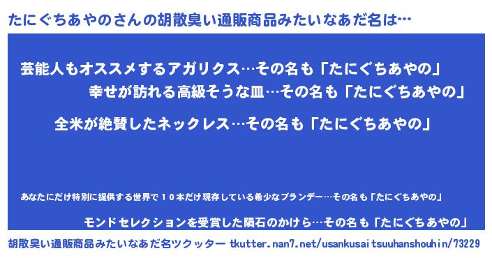 | 意味不明あだ名 | 『とにかく怪しいたにぐちあやの』 |