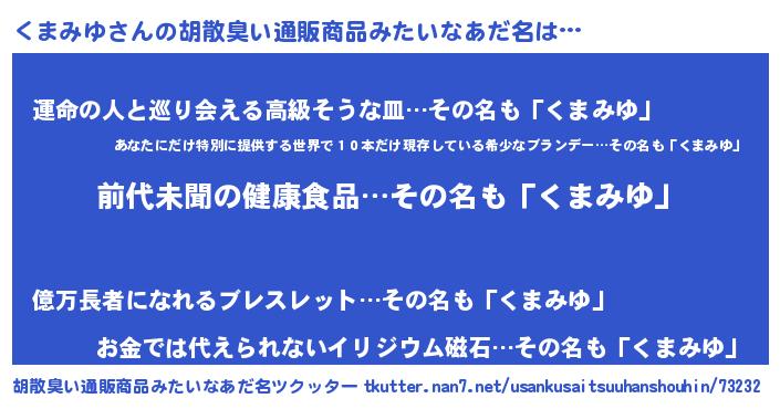 | 意味不明あだ名 | 『ニラ科くまみゆ属』『永久保存くまみゆ』 |