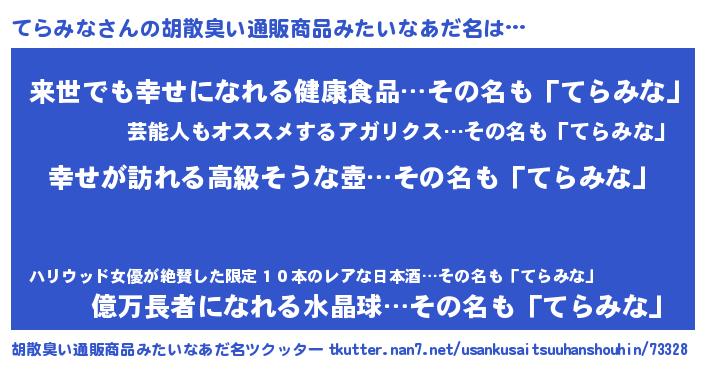 てらみなさんの胡散臭い通販商品みたいなあだ名をツクッター!