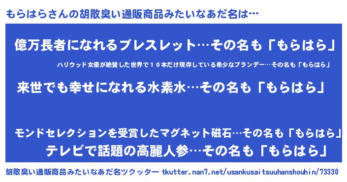 | ヘコむあだ名 | 『もらはら(震え声)』『もらにー』 |