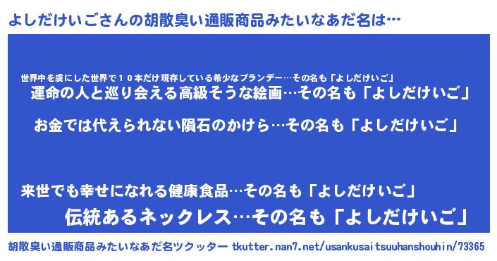 | 欧米人風あだ名 | 『ダニエルよしだけいご』 |