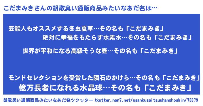 | ヘコむあだ名 | 『なまこ酢』『こだっふぃ~』 |