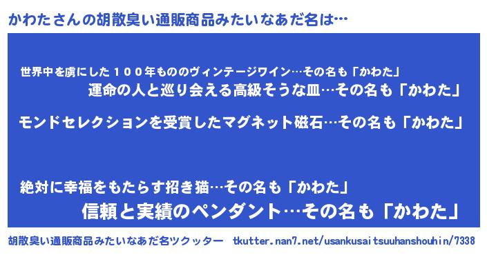 | ピコ太郎風あだ名 | 『カカ太郎』『カワ三郎』『ピカ十郎』 |