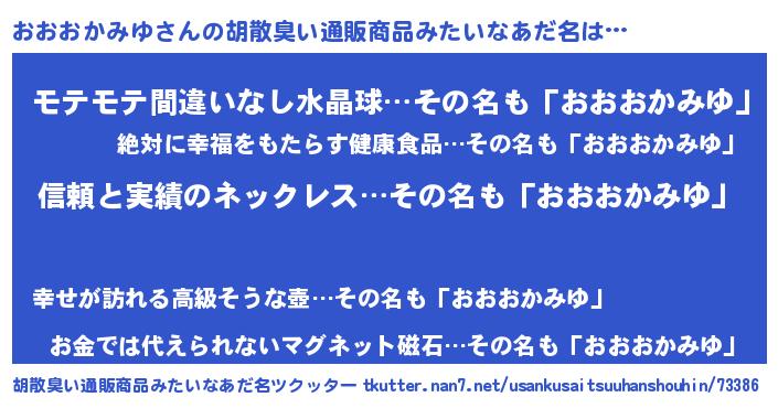 | 意味不明あだ名 | 『とにかく怪しいおおおかみゆ』 |