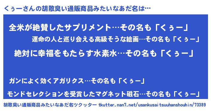 | ヘコむあだ名 | 『くぅー(苦笑)』『くぅ太郎』 |
