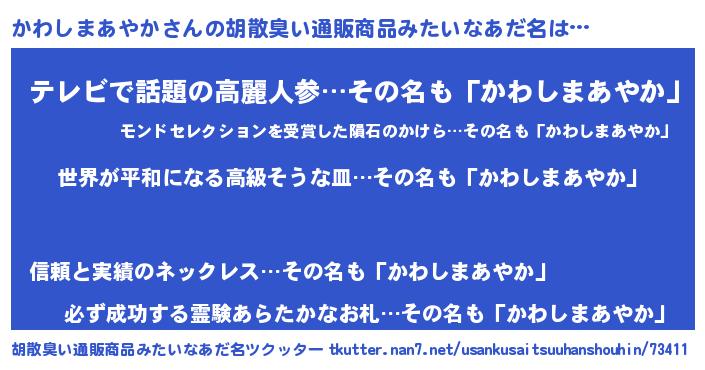 | 意味不明あだ名 | 『かわしまあやかフォーエバー』 |