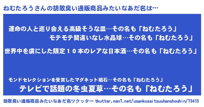 | 意味不明あだ名 | 『住所不定無職ねむたろう(41歳)』 |
