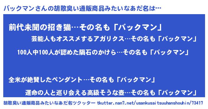 | ヘコむあだ名 | 『バックマン(震え声)』『酢こんぶ』 |