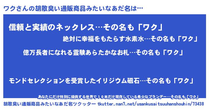 | ヘコむあだ名 | 『ワクっふぃ~』『ワク太郎』『豆乳』 |