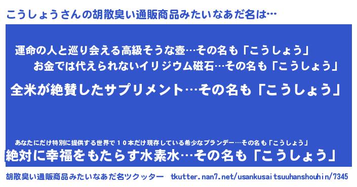 | 意味不明あだ名 | 『とにかく怪しいこうしょう』 |